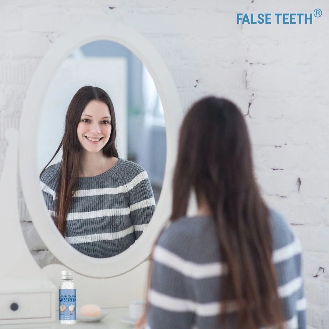 ConFALSE TEETH®puedes recuperar la apariencia natural de tus dientes en minutos y sin necesidad de ir al dentista.