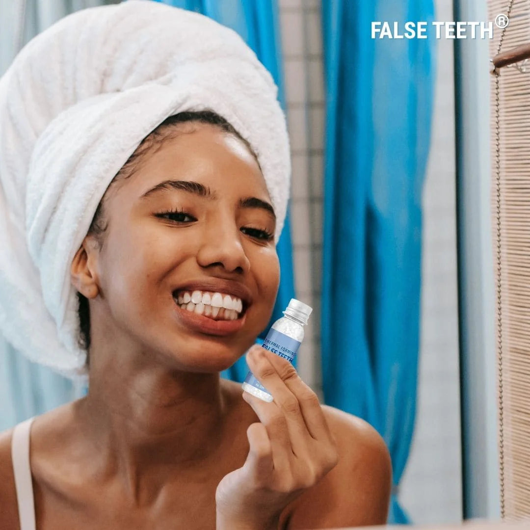 FALSE TEETH®se adapta a la forma de tu dentadura, creando una pieza queencaja perfectamente contigo