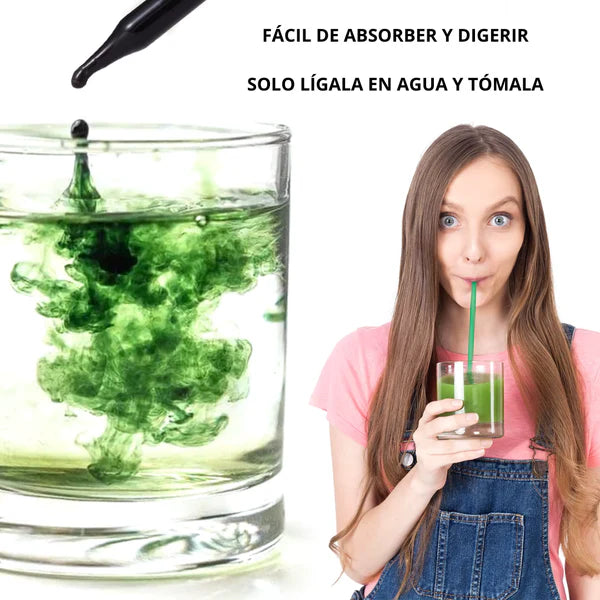 Las gotas de clorofila proveen una fuente natural de energía, revitalizando tu día y ayudándote a enfrentar cada desafío con vitalidad renovada.