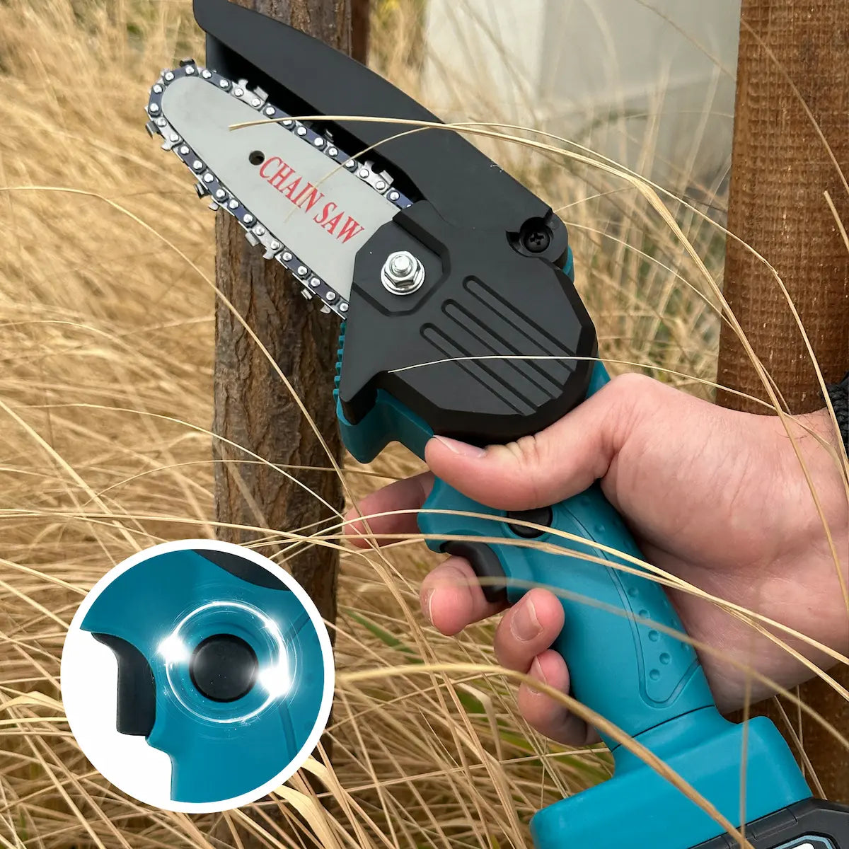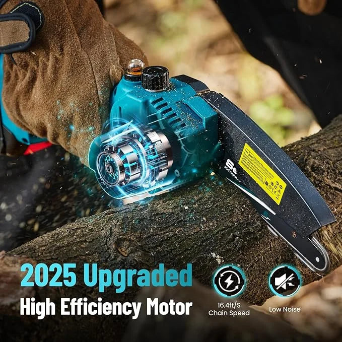 La Mini Motosierra tiene la potencia perfecta para cortar hasta un diámetro de 6" parejo con una velocidad de 5-8S.